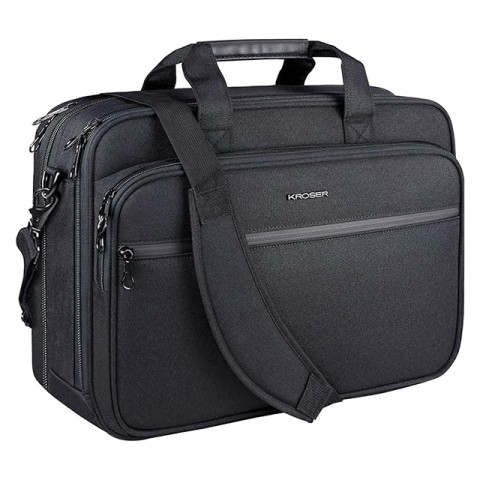 MATERIAL: The laptop briefcase is made of environment-friendly canvas poly fabric which is durable and water-repellent. Dimensions: 18”x12.8”x7.5”/9.5”; Weight: 2.88 LBS.